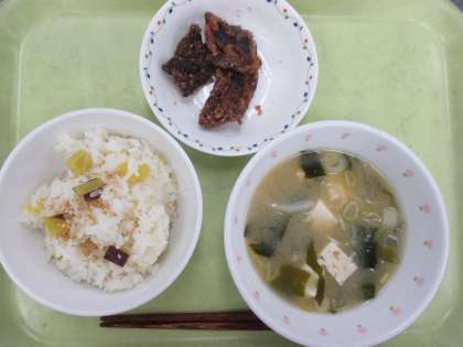さつまいものごはん 牛乳 鯨肉の竜田揚げ 大根の味噌汁