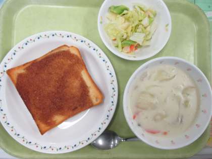 シナモントースト 牛乳 クリームシチュー きゃべつサラダ
