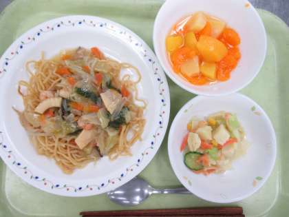 上海麺 牛乳 ポテト入りフレンチサラダ フルーツパンチ