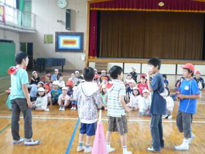 今日は、6年1組と1年1組との交流活動の場面に出会いました。6年生の子どもたちが1年生にゲームの紹介を一生懸命説明している姿がお兄さんぽくってすてきでした。そのあと、ジャンケン列車でお互いに方に手をやりながら楽しそうに遊んでいました。6年2組と1年2組の交流活動は、昨日だったようで、次回は写真に収めようと思います。