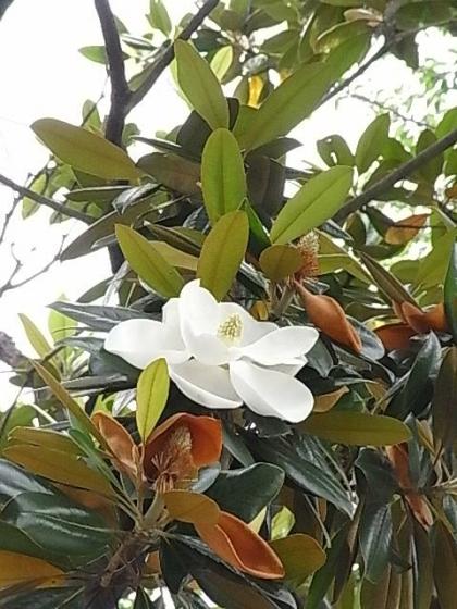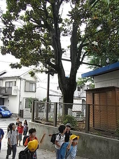 朝、正門前に立っていると、とても甘いすてきな香りがしてきます。なんだろうと上を見上げると、大きな白いタイサンボクの花が咲いていました。来週からは西門登下校のために香りを楽しむことができません。明日の朝、花を見て香りを楽しんでみてください。