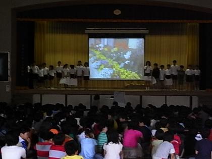 児童集会で、栽培委員会と飼育委員会の発表がありました。