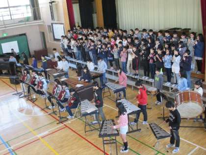 お返しとして、6年生は映画スターウォーズのテーマを合奏しました。