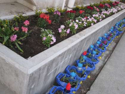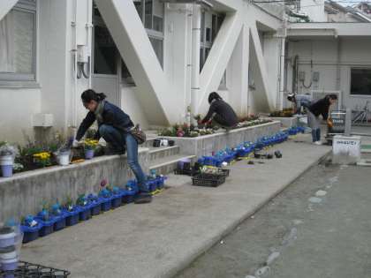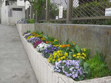 先日、フレンドシップのフラワー担当の大澤さん、田代さん、山本さん、栗田さんが、本年度最後の花壇の花植えをしてくださいました。明日の卒業式と4月の入学式、また、子どもたちの進級の喜びを花壇の花々も祝ってくれているかのようです。他にも、今までボランティアでお手伝いをしてくださった保護者の皆さん、ありがとうございました。