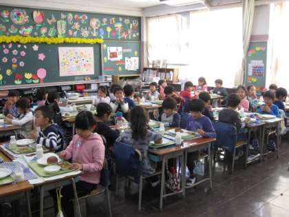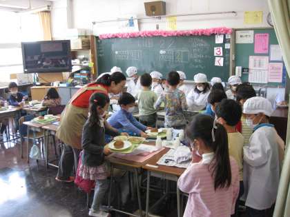 1年生の給食が始まりました。どのクラスも配膳が上手でした。