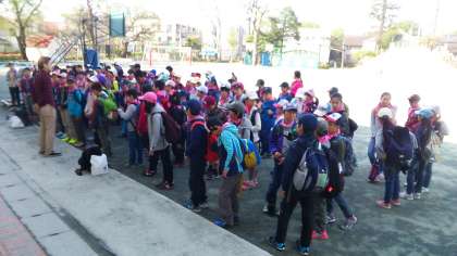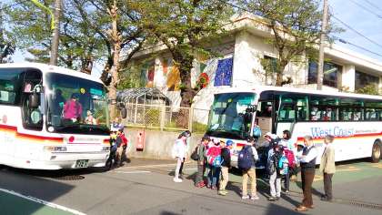 先週末の天気予報では、雨かもしれないと心配していたのですが、素晴らしいお天気になりました。クラス替えのあとの初めて遠足です。5年生は皆、きっと普段の心掛けがいいんですね。