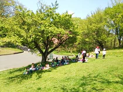 いよいよ、お弁当になります。ポニーはかわいいけど、匂いが…。日影がいいな…。