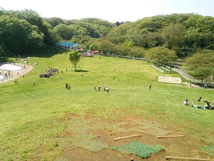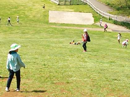 こどもの国の締めくくりは、眺めのいいところに来ました。斜面をコロコロころがったり、かけ降りたり、体をたくさん動かして遊びました。