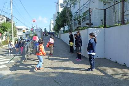 今週は、1学期はじめの挨拶週間です。今日は本校教員に加え、玉川中学校の生徒も駆けつけてくれました。また、PTA会長様も一緒にいてくれています。