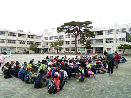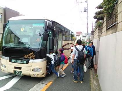 4クラスですが、3台のバスで出発します。みんな、仲良く、安全に行ってきます。