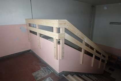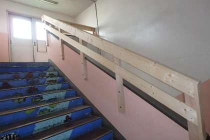 校舎の屋上に出る所の踊場等の手すりが低いため、体を乗り出すことが困難になるように工事をしていただきました。