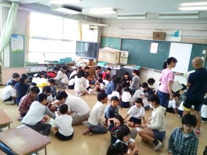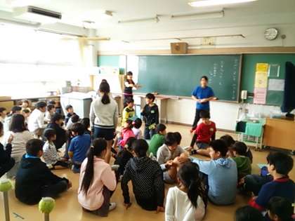 各班で、自己紹介をしたり、グループ名を決めたりしました。そのあとは、班対抗での伝言ゲームです。