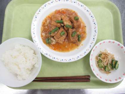 ごはん 牛乳 生揚げそぼろあんかけ ごま酢かけ