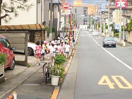 昨日に引き続き、3年生は町探検です。しかし、今日の雲の様子と強風を考慮し、コースを短縮して行いました。