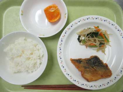 ごはん 牛乳 魚のたつた揚げ 野菜のからし醤油掛け