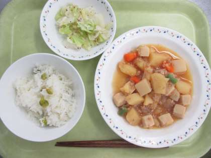 新じゃがいもと新きゃべつを使い、春を感じる給食でした。