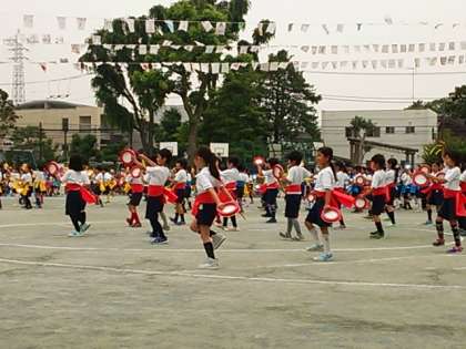運動会、午後の部も終了します。残すは全校競技大玉送りです。