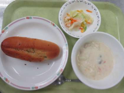 ガーリックトースト 牛乳 クリームシチュー コーンサラダ