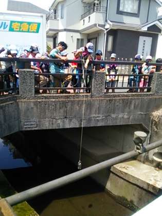 4ヶ所目、丸子川合流の天神橋、最後の採水です。