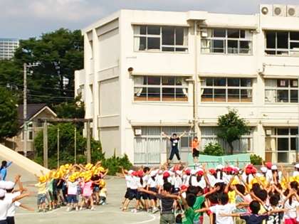 今年度2度目の玉チャレです。朝の10分間の活動です。内容は高学年と同じじゃんけんサーキット。