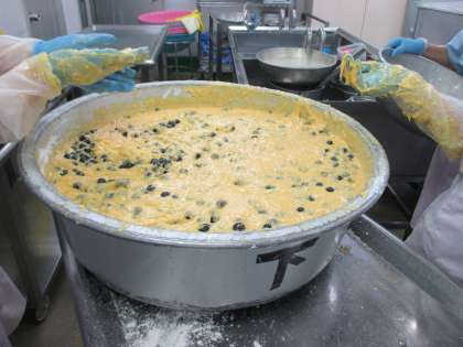 生のブルーベリーを使ってきれいな色のケーキができました。