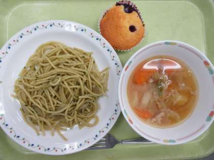 スパゲティバジリコ 牛乳 白いんげん豆のスープ