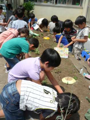 運動会も終わり、それぞれの学年が学習に気持ちを集中して授業を行っている様子が見えます。3年生は、理科の日なたと日かげの温度の違いを実際に温度計をつかって、校庭や花壇を使って調べていました。花壇に植えられたキャベツには、モンシロチョウが寄ってきて卵を生んでいるようです。これも3年生の理科の授業で使われるかも。