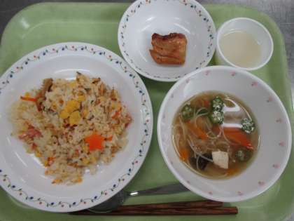 子ぎつねごはん 牛乳 鶏肉の照り焼き 七夕汁 七夕ゼリー