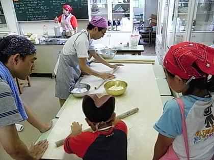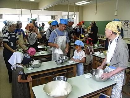 今日は、学校協議会主催の親子クッキング教室がありました。今回は、うどんづくりでした。講師は、本校校長です。小麦粉と塩と水だけでつくるシンプルなうどんづくりでした。小麦粉に塩を入れ、できるだけ水を少なくしてうどん玉を作りました。そして、延べ棒で伸ばして、切り、茹でて出来上がり。言葉では簡単ですが、やってみると結構力のいる楽しいクッキングになりました。ランチルームで、自分で玉にして延ばし、湯がいて食べるうどんの味は、本当に格別のおいしさでした。定員が30人と多かったため、待ち時間が長くて後のグループには申し訳なかったです。でも、親子のふれあいができて、有意義な会になったと思います。