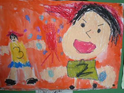 6/11 1年生の廊下に運動会の絵が展示されています!