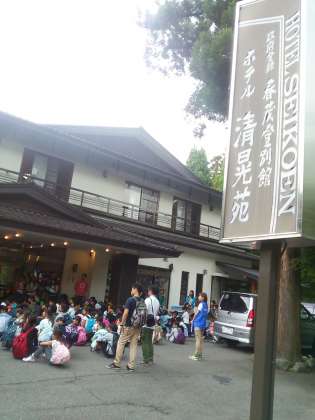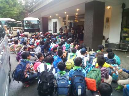 ホテルの正面玄関をお借りして、開園式を行いました。これから2泊3日お世話になります。