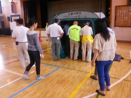 今日は年に1度の避難所運営訓練をランチルームで行いました。上野毛町づくりセンターの方々が中心となり、