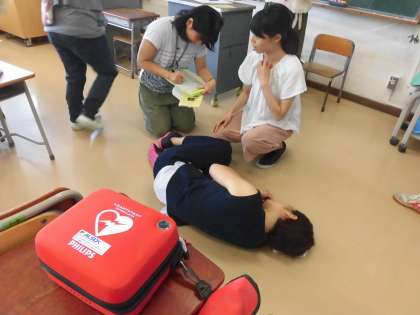 2学期に入る前に、アレルギー対応の訓練を行いました。エピペンを打つ練習や、いざという時に、どのように自分が行動すればよいのかを確認いたしました。