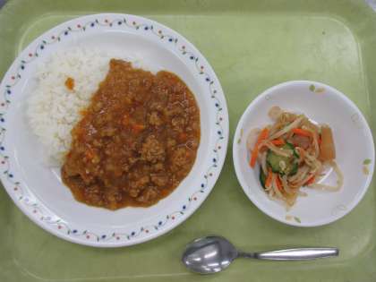 キーマカレーライス 牛乳 こんにゃくサラダ