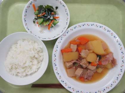 ごはん 牛乳 肉じゃがのうま煮 わかめとしらすの酢の物