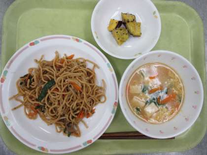 ソース焼きそば 牛乳 じゃこ入り大学芋 中華風コーンスープ