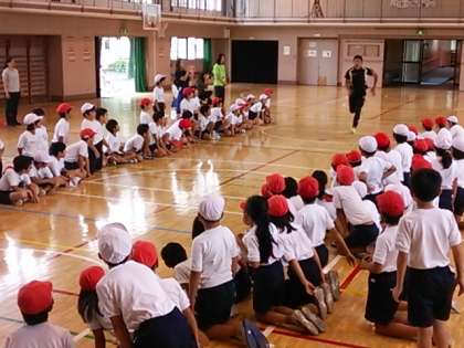 最後に、日本体育大学で陸上競技の十種競技をしている学生に100メートル10秒台後半の走りを見せていただきました。