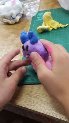 粘土でつくったキャラクターをペットボトルのタワーにのせて、作品にします。どんな作品が出来上がるか、お楽しみに…。