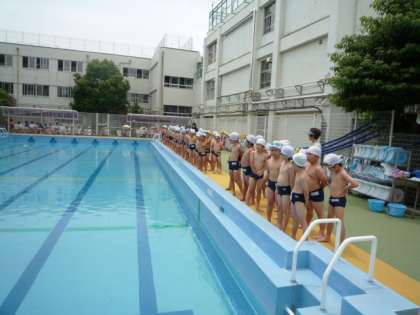 快晴に恵まれて、2年生のプール開きが行われました。4人の代表の子が、自分の今年のめあてを元気な声で発表してくれました。フェンスの外では、たくさんの保護者の方が参観してくださいました。