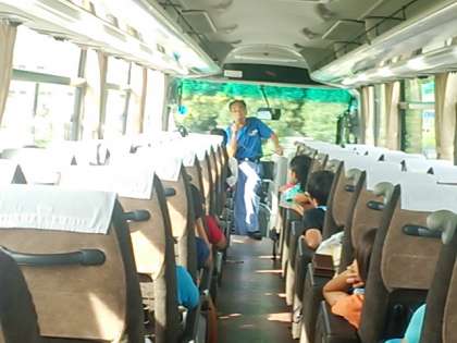 バスに説明係の方が乗車してくださいました。この後はバスからの車窓見学です。