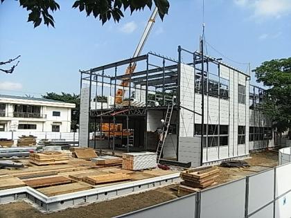 耐震補強工事に伴う仮設校舎建設の様子
