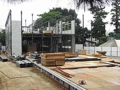 建物南半分の側面と床面の骨組みが出来上がりつつあります。