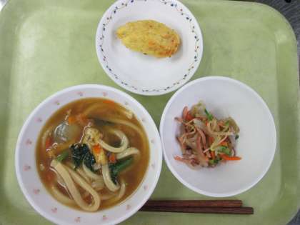 カレーうどん 牛乳 かみかみサラダ スイートポテト