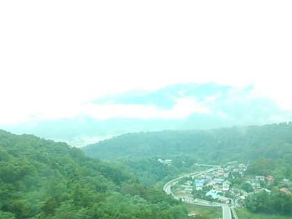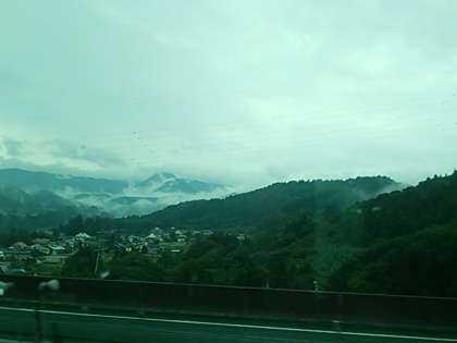 群馬県に入りました。雨は降っていませんが、左右に見える山々には霧が多くかかっています。