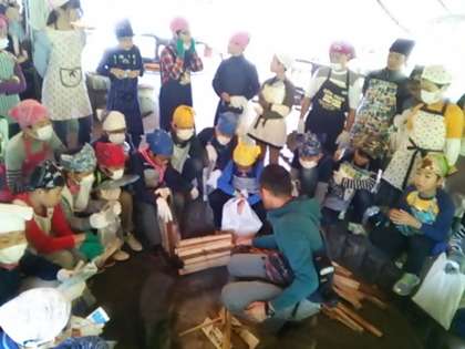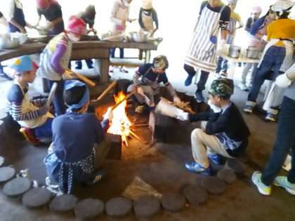 みんなで力を合わせて火おこしから始めます。