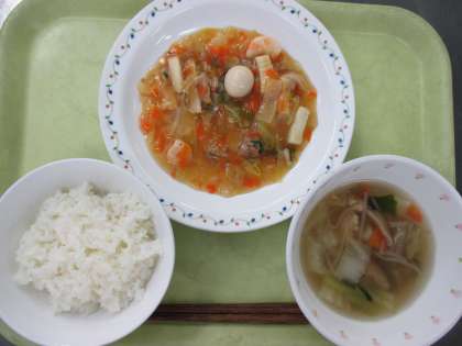 ごはん 牛乳 八宝菜 中華スープ