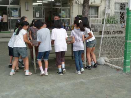 毎回の全校朝会では、朝礼台を所定の場所に設定し、終了したら所定の場所にしまうという仕事があります。この所定の場所にしまう作業を、6年生の子どもたちが行うことが玉小の伝統なのです。今日は、1組の女子の担当ということで、みんなで力を合わせて動かしてくれました。ありがとうございました。