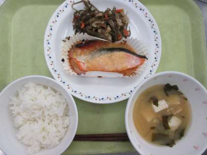 ごはん 牛乳 鮭の味噌マヨネーズ焼き 刻み昆布の五目煮