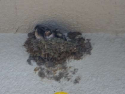 毎年恒例の鳥が、帰ってきました。同じ場所に巣を作り、かわいいヒナにえさを懸命に与えています。そうです,ツバメが今年も渡り廊下の天井に巣を作って3〜4匹のヒナを育てているのです。今年の巣が去年の壊れかけた巣を使っているので、ヒナが巣から落ちないかひやひやしながら見守っています。3年生が一生懸命観察して記録しています。