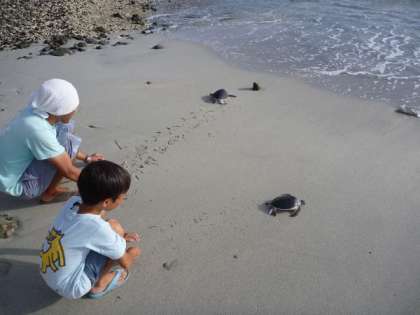 当団体のスタッフと、たまたま海洋センターに遊びに来た小笠原小学校の5年生と一緒に放流したそうです。